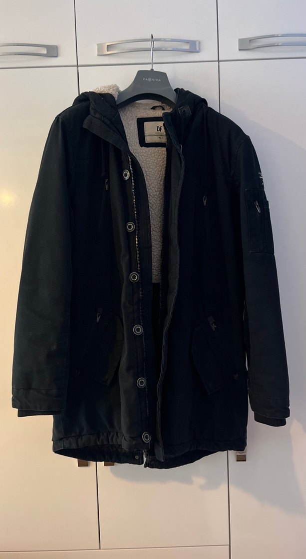Siyah renkli, düğmeli ve notched yakalı erkek midi mont. Rahat kesimi ve uzun kolları ile günlük sokak stiline uygundur. İç kısmı yumuşak ve sıcak tutar.