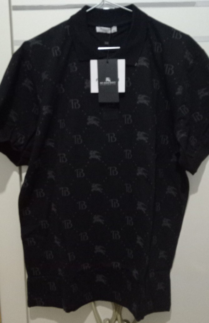 Erkekler için siyah renkli, düğmeli, baskılı desenli, kısa kollu, yuvarlak yakalı, bol kesim polo tişört.