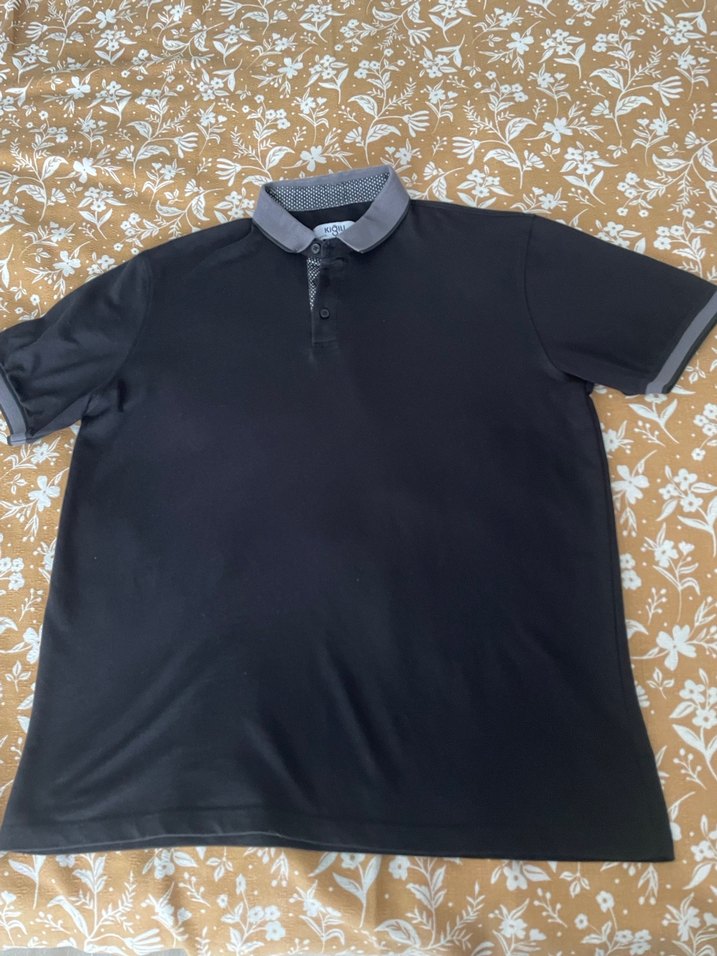 Kısa kollu, yakalı ve düğmeli siyah erkek polo tişört. Rahat kesimli, sentetik kumaştan, günlük kullanıma uygun. Dar geldiği için satıyorum