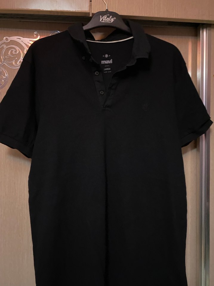 Siyah renkli, düğmeli, yakalı ve kısa kollu erkek polo tişörtü. Rahat kesim ve sentetik kumaştan üretilmiştir, günlük sokak stili için uygundur.