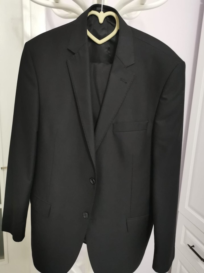 Siyah renkli, düğmeli ve klasik kesim erkek takım elbise ceketi. Uzun kollu, desen içermeyen ve ofis için uygun bir modeldir. ️
