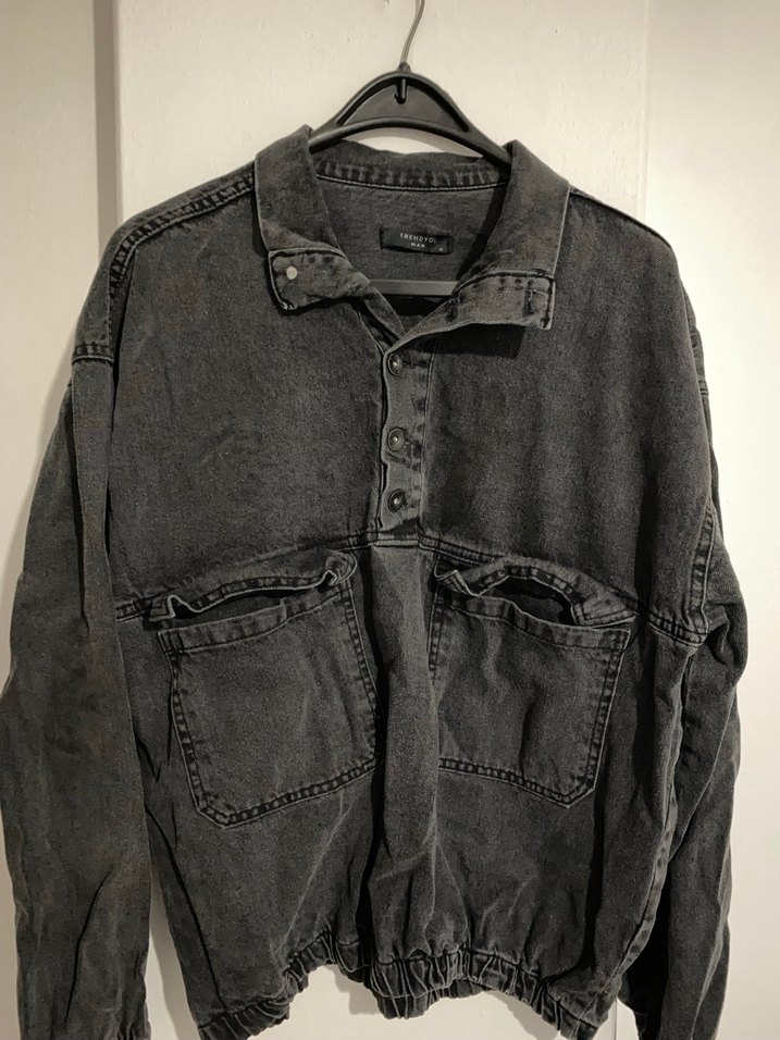 Siyah renkli, düğmeli ve yakalı erkek denim ceketi. Gevşek kesim, uzun kollu ve iki büyük ön cepli, günlük sokak stili için uygun midi boyda bir parçadır. 〰️İNDİRİMSİZ SATIŞ YOKTUR.❗️❗️