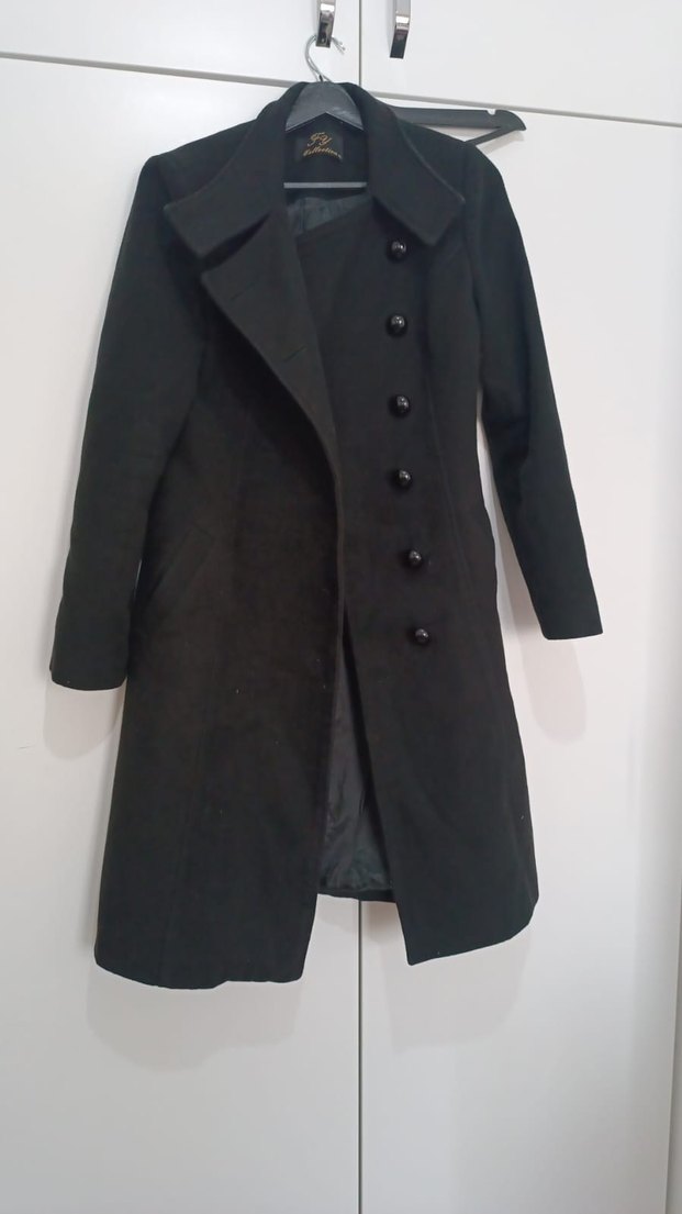 Önü düğmeli, geniş yakalı siyah kaban. İç kısmı rahat bir astar ile kaplıdır. Serin havalar için uygundur.