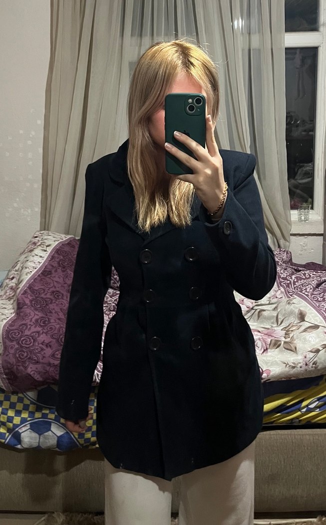Siyah uzun kollu, yakalı ve düğmeli kadın blazer ceket. Normal midi boyda, düz desensiz ve ofis için uygun regular fit kesimde, sentetik kumaştan üretilmiştir.