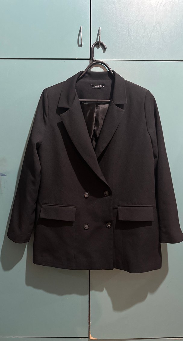 Siyah Düğmeli Kadın Blazer Ceket