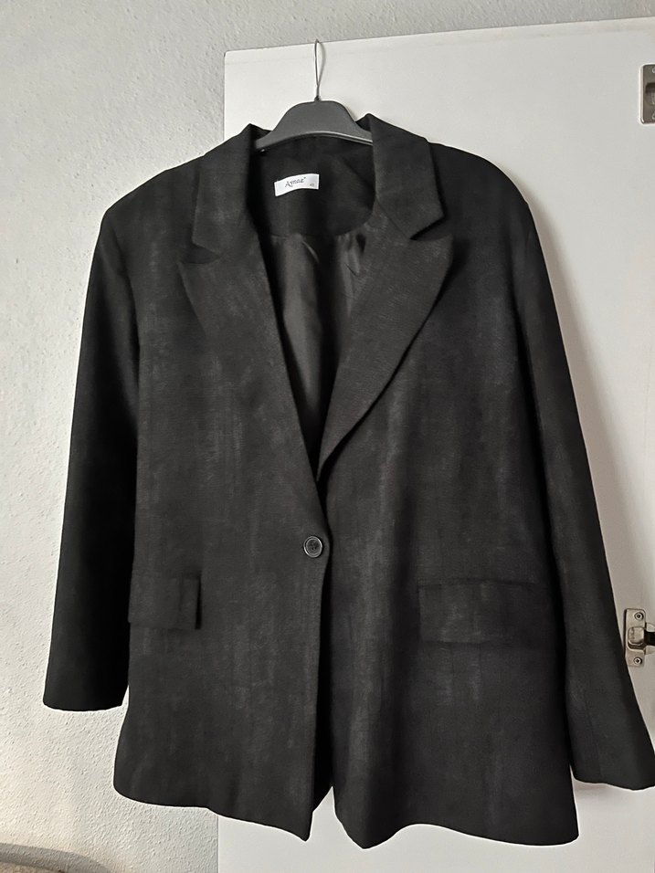 Siyah düğmeli ve normal uzunlukta kadın blazer ceket. Notlu yaka ve uzun kolludur, rahat kesimlidir ve ofis ile günlük kullanıma uygundur.