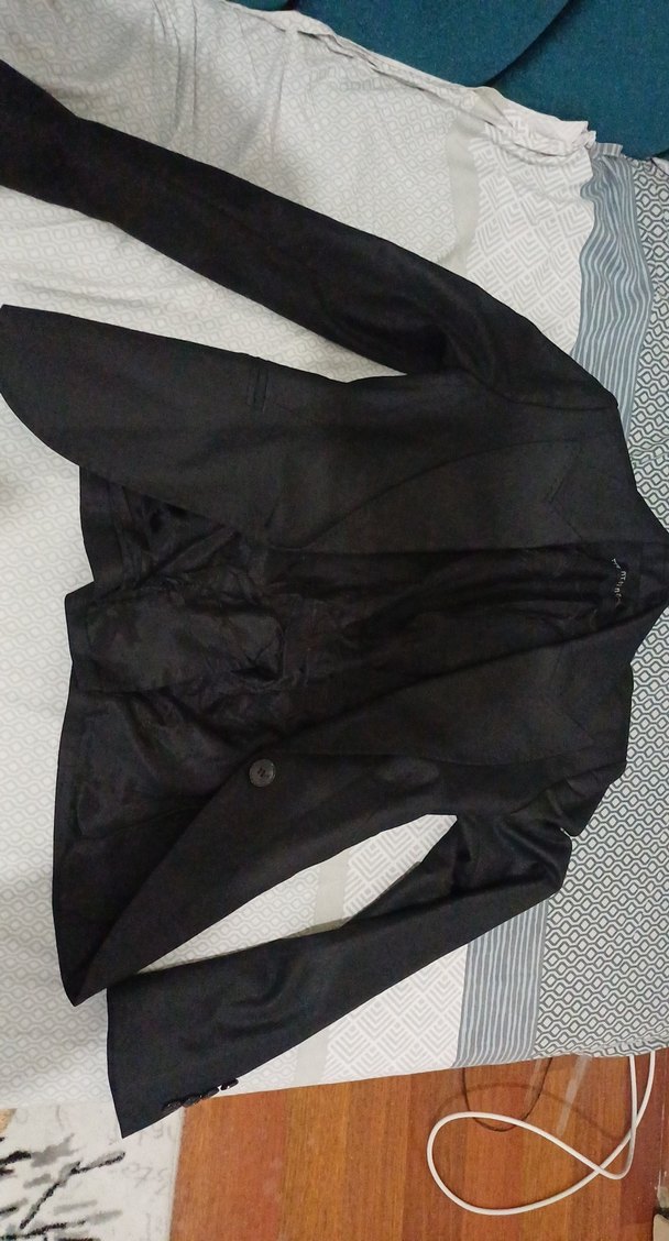 Siyah, düğmeli, dar kesim kadın blazer ceket. Uzun kollu, normal midi boyda, ofis için uygun gotik tarzda tasarlanmıştır. kolları vatkalıdır.Ürün çok iyi durumdadır.S beden ama M bedene de tam olur bence.