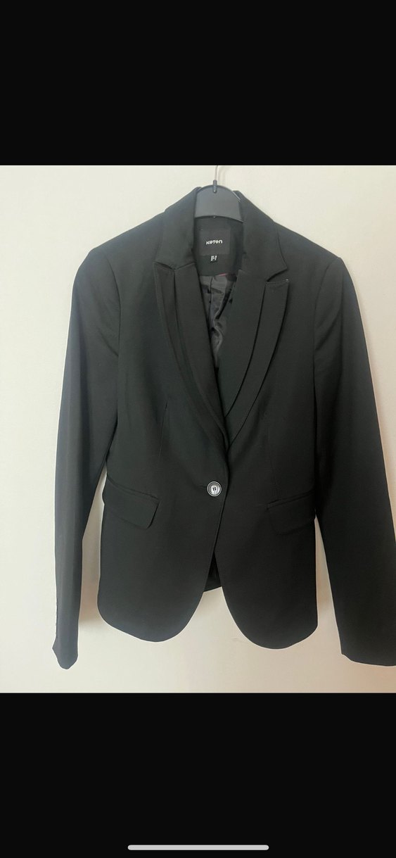 Siyah, düğmeli, normal boy midi kadın blazer ceket. Uzun kollu, regular fit ve yakası kesik detaylıdır. Ofis ve günlük kullanıma uygundur.