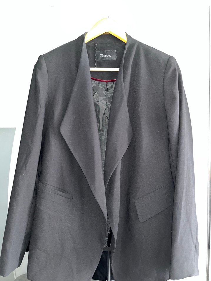 Siyah renkli, düğmeli ve uzun kollu kadın blazer ceket. Normal kesim ve notched yaka detayına sahiptir. Ofis ve günlük sokak stiline uygun, desensiz kumaştan üretilmiştir.