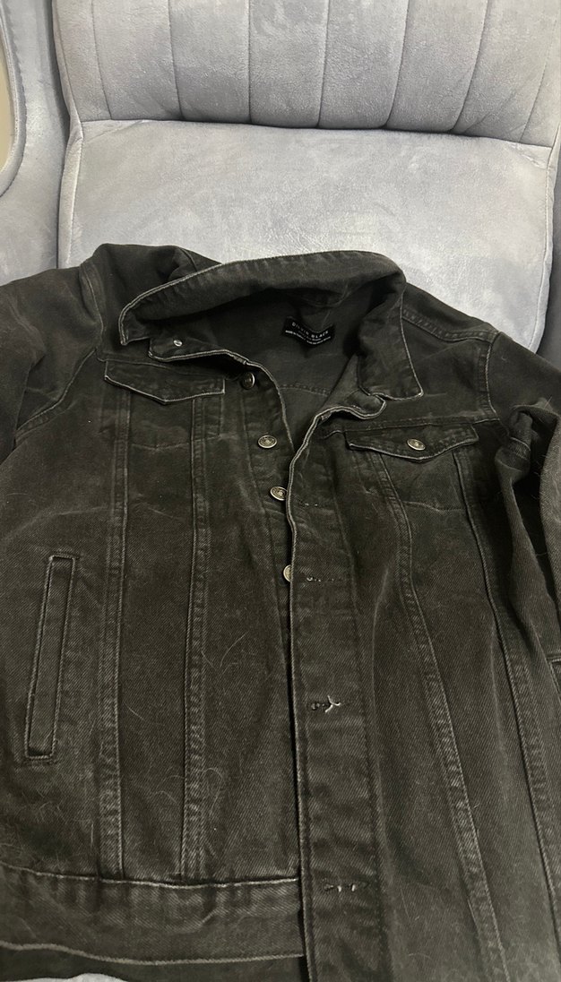 Siyah düğmeli denim ceket, notlu yaka ve uzun kollu. Rahat kesimi ve normal boyu ile günlük kullanıma uygun, sokak modasına uygun. ✨