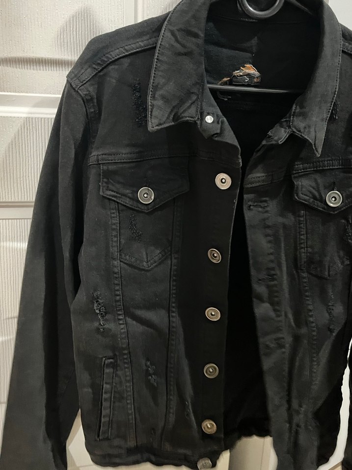 Siyah Düğmeli Kadın Denim Ceket