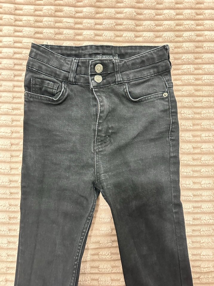 Düğmeli ön kısma sahip, normal midi boyda, siyah renkli, dar kesim kadın denim pantolon. Günlük kullanıma uygun minimal tarzda.