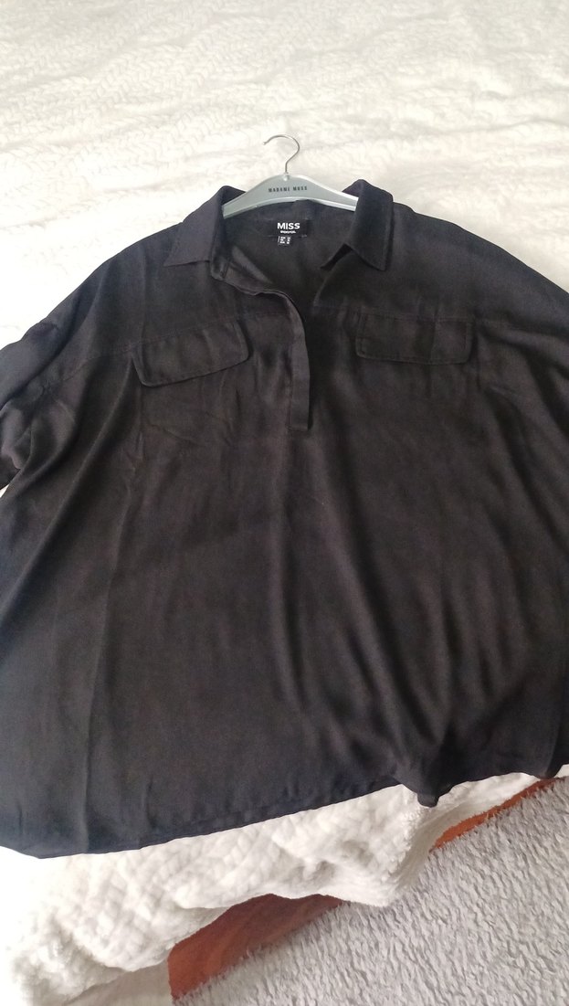 Siyah, düğmeli, kısa kollu, yakalı, midi uzunlukta, bol kesim kadın gömleği. Kadifemsi dokuyla günlük sokak stiline uygun.