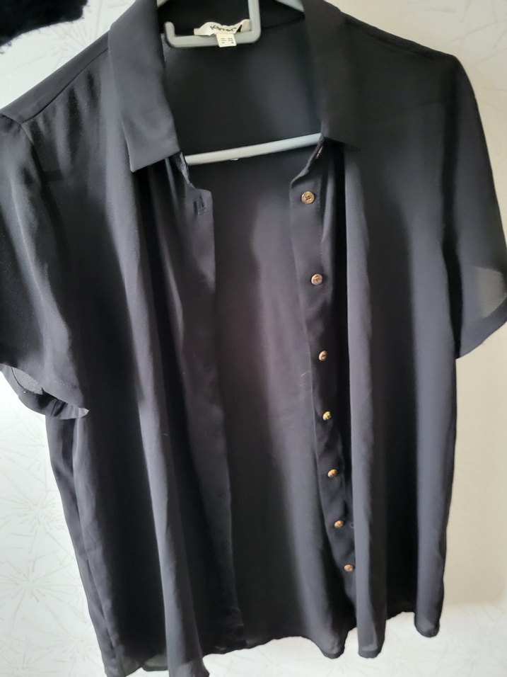 Siyah renk, düğmeli, kısa kollu ve yakalı kadın gömleği. Salaş kesim ve ipeksi dokusu ile ofis ve günlük kullanıma uygundur.