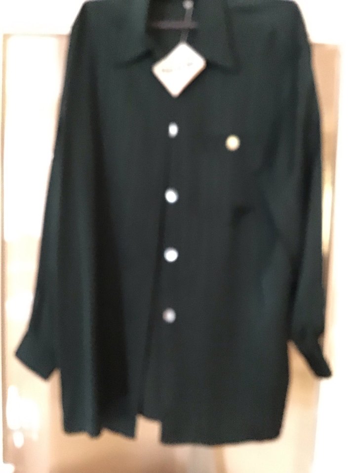 uzun kollu kadın gömleği, yakalı ve düğmeli, bol kesim, ipeksi kumaştan, klasik ve desensiz, ofis için uygun. %100 ipek 40 beden koyu yeşil renk yurtdışından alındı 40 beden yazıyor 42 bedenede olur bol kalıp