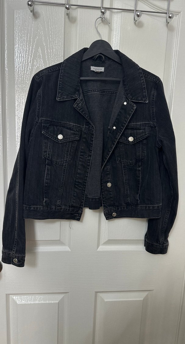 Topshop marka Siyah kot kumaştan yapılmış, düğmeli ve uzun kollu, kesimi vücuda oturan kadın ceketi. Günlük kullanım için uygun, rahat bir sokak stili sunar.