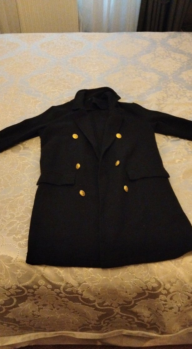 Siyah Düğmeli Kadın Midi ceket