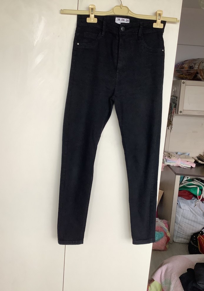 Siyah renkli, düğmeli ön kısmı ve dar kesimiyle günlük kullanıma uygun midi boy kadın kot pantolon.