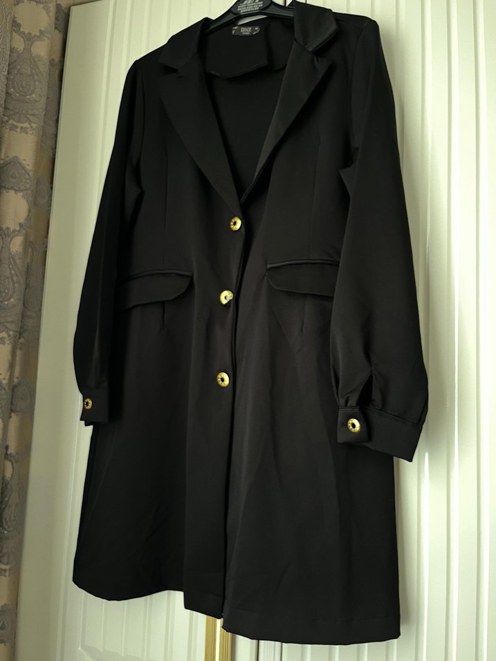 Siyah Düğmeli Kadın Uzun Ceket - Görsel 1