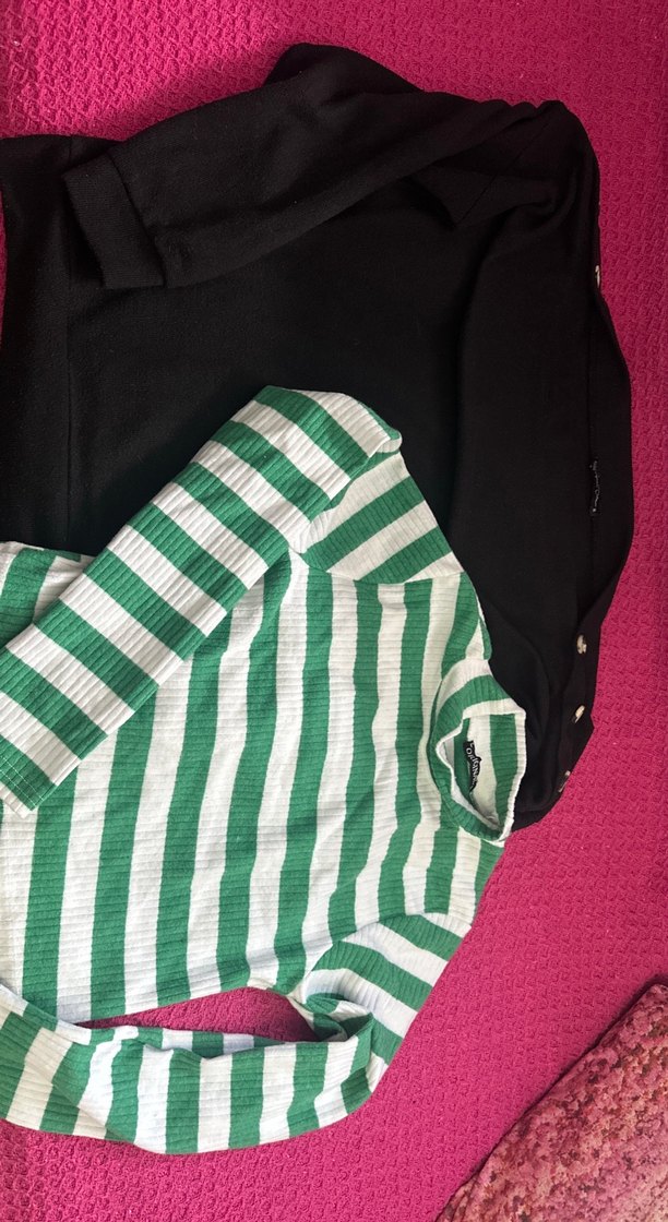 Siyah düğmeli kayık yaka&yeşil Balıkçı Yaka bluz kışlık 2 adet