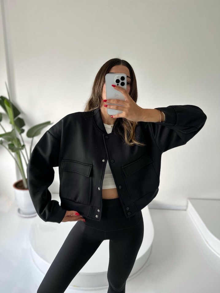 Siyah Düğmeli Kısa Ceket