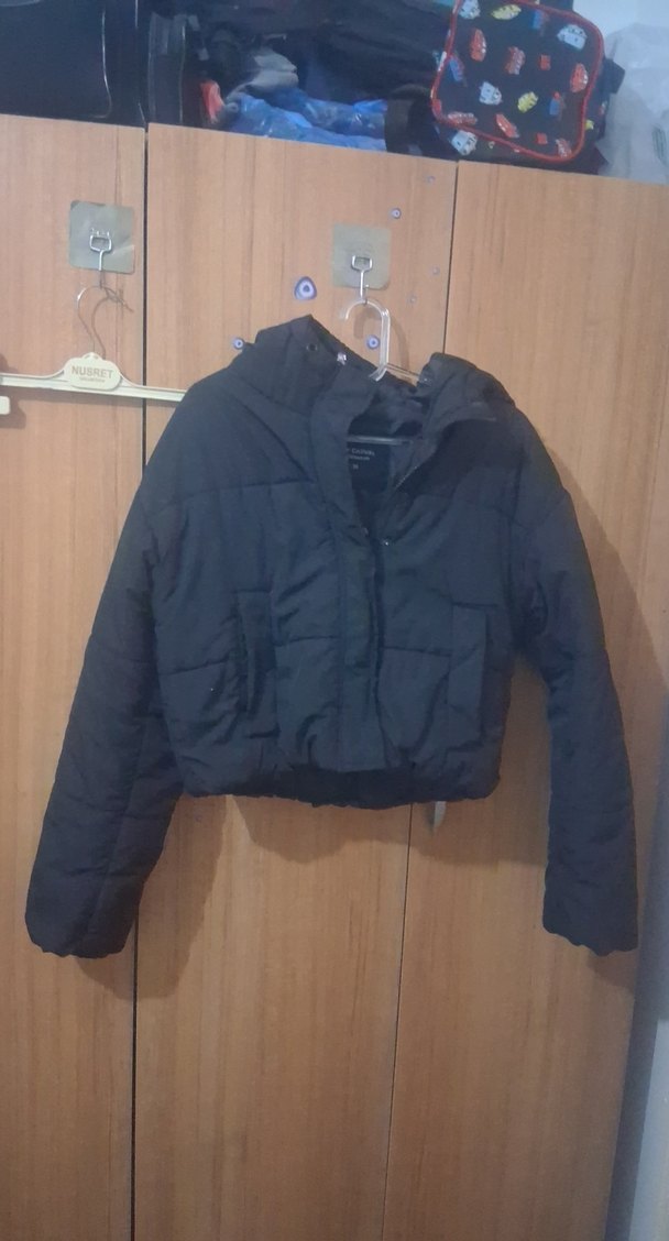 Siyah Düğmeli Kısa Kadın Kışlık Mont.boy 42.en 46