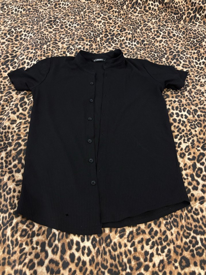 Siyah Düğmeli Kısa Kollu Erkek Gömlek
