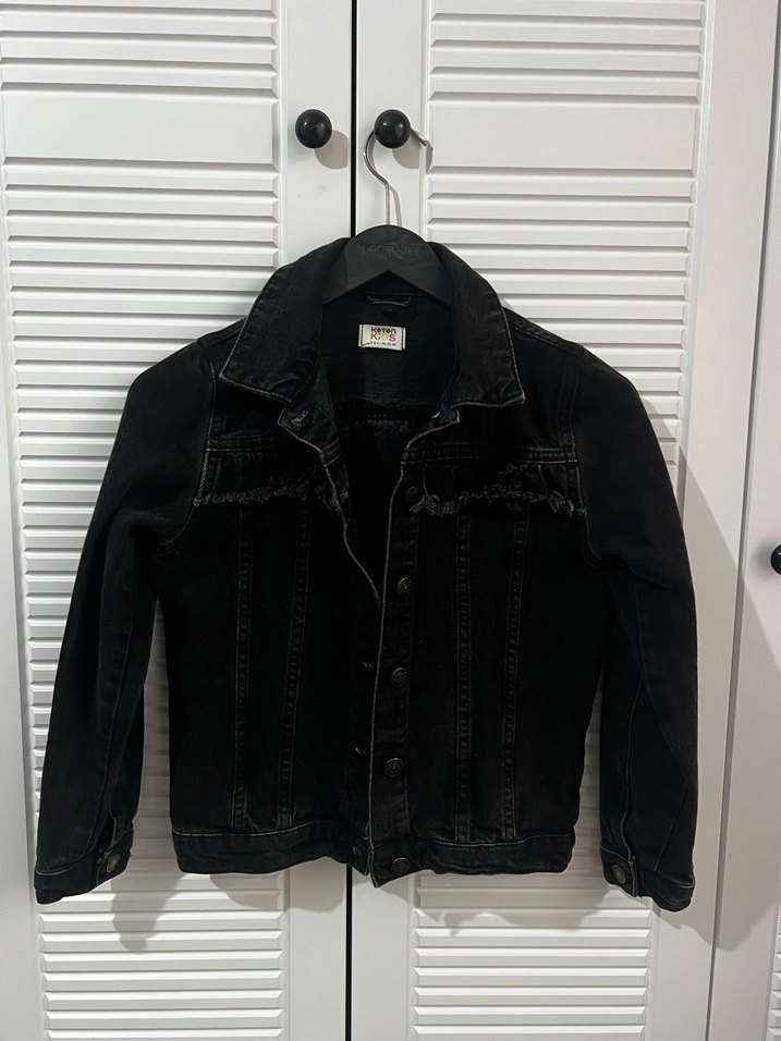 Siyah Düğmeli kız çocuk Kot Ceket