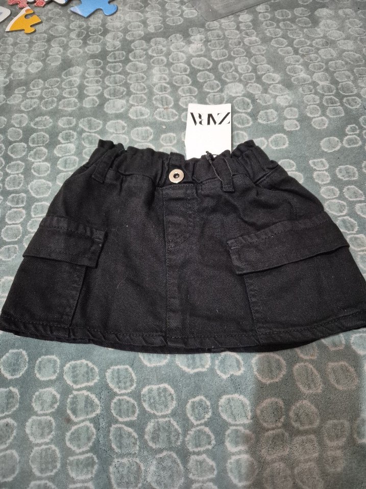 Siyah kot kumaştan, düğmeli ve cepli olan bu kız etek, rahat kesimiyle günlük sokak stiline uygundur. 2-3 / 3-4 / 4-5 yaşları vardır
