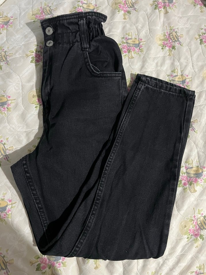 Siyah Düğmeli Kot Pantolon