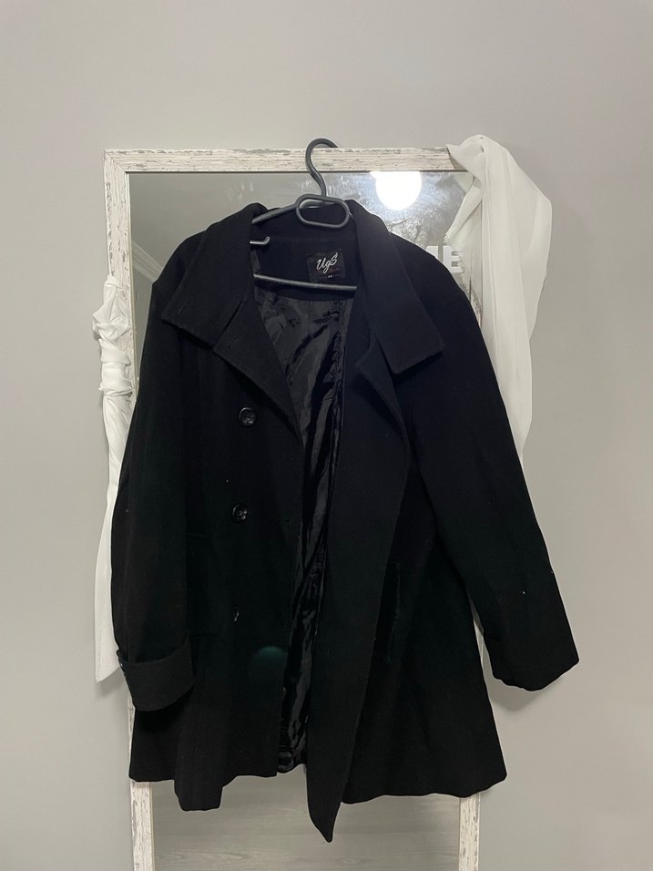 Siyah, düğmeli, normal uzunlukta kaban. Notlu yaka, bol kesim ve uzun kollu, yumuşak ve sıcak kumaştan yapılmıştır.