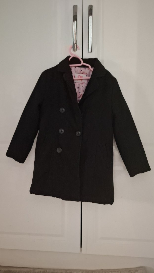 Siyah, düğmeli, normal boy midi hamile kaban. Uzun kollu ve regular fit, yumuşak ve sıcak kumaştan üretilmiştir, günlük kullanıma uygundur.