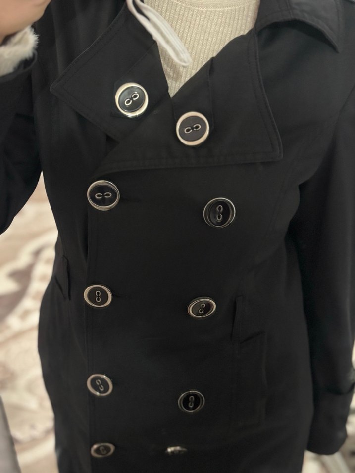 Siyah Düğmeli Midi Kadın Trençkot