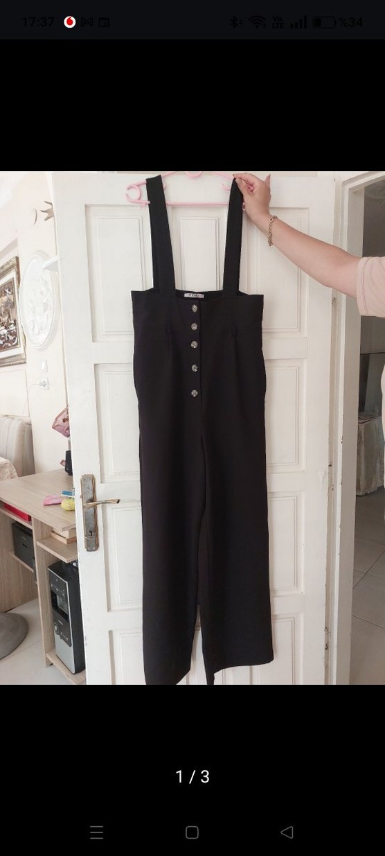 Siyah, düğmeli, askılı midi tulum. Notched lapel yakalı ve regular fit. Sentetik kumaştan, günlük kullanıma uygun. ✨