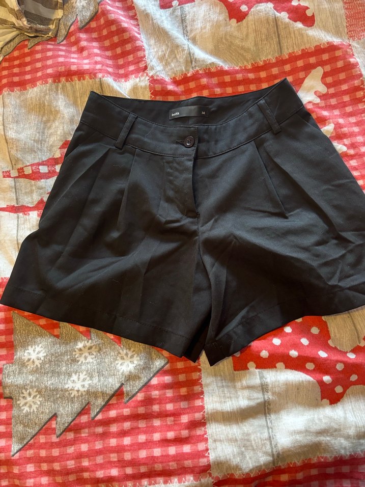 Siyah pamuklu, düğmeli, bol kesim mini şort. Trendy casual ve street wear tarzları için uygun, romantik akşamlar için ideal. kilo sebebiyle satıyorum