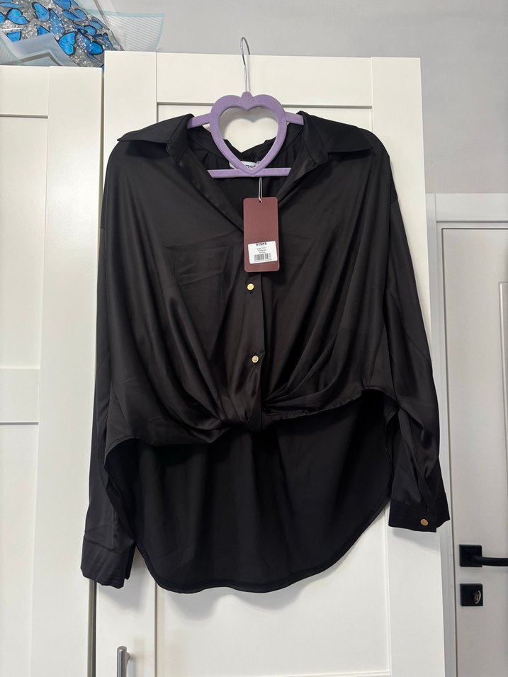 Düğmeli, uzun kollu, yakalı, saten kumaş , kendinden bağlamalı ama kısa değil arkası uzun hiç giyilmedi