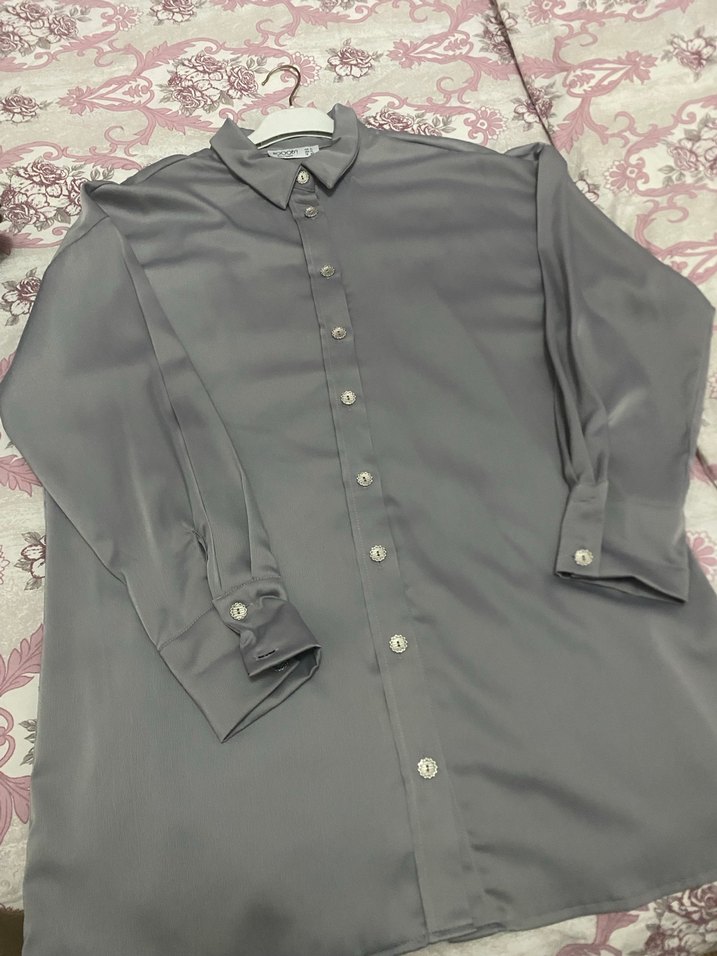 Siyah Düğmeli Saten Kadın Gömlek