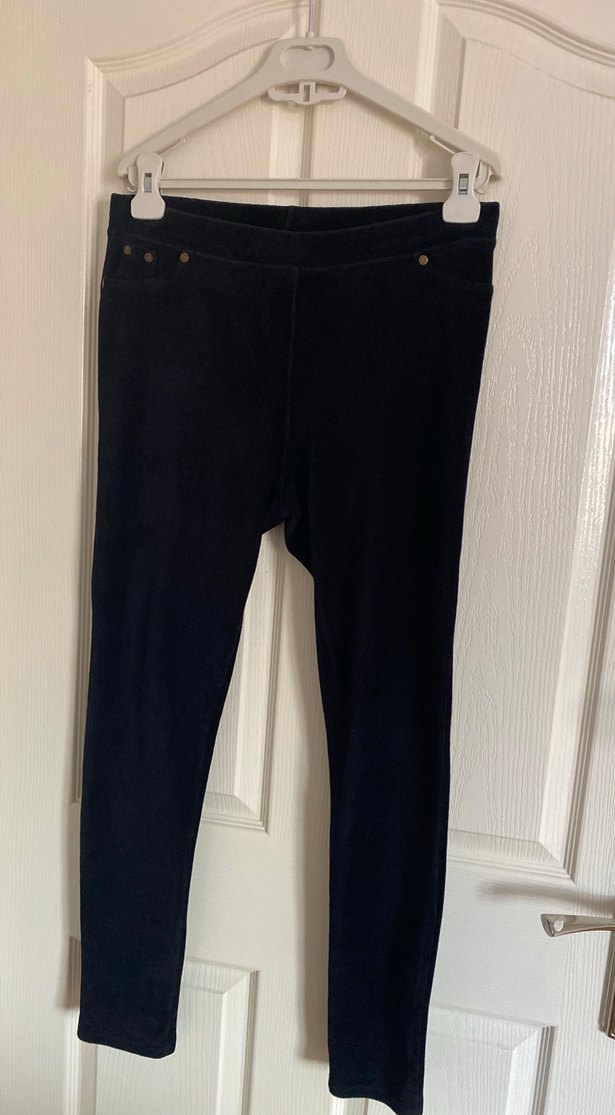 Düğmeli, siyah, dar kesim kadın kot pantolon. Günlük kullanıma uygun goth tarzını yansıtır.