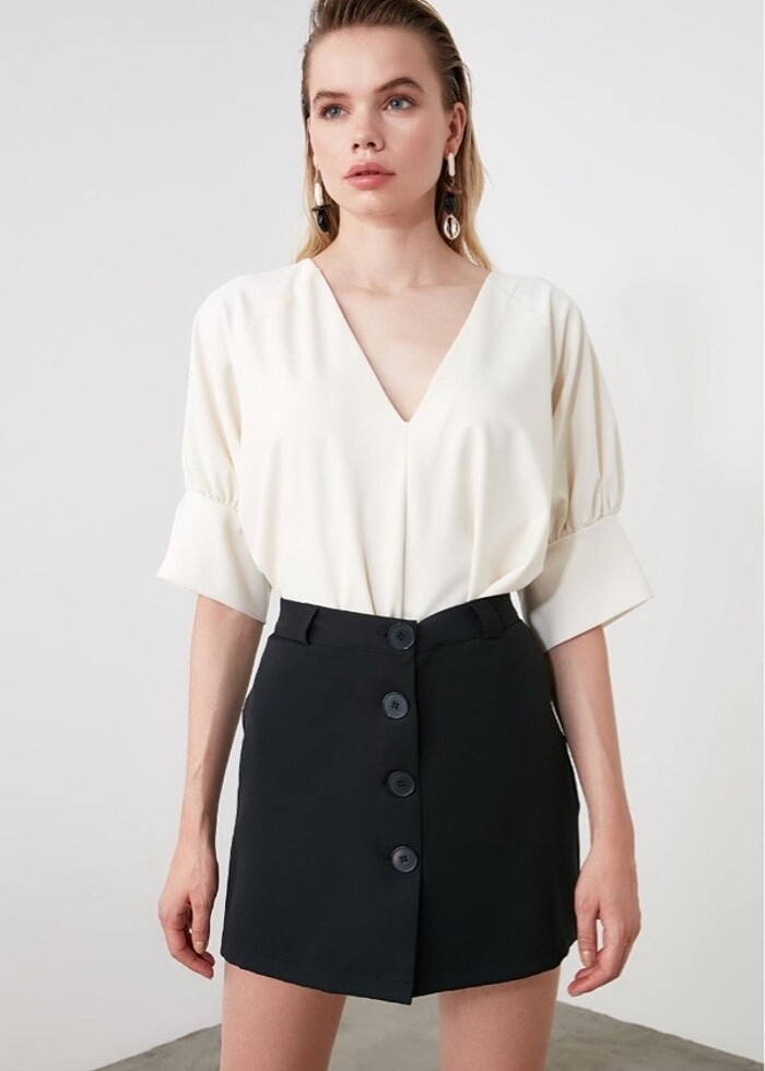 Siyah düğmeli şort etek