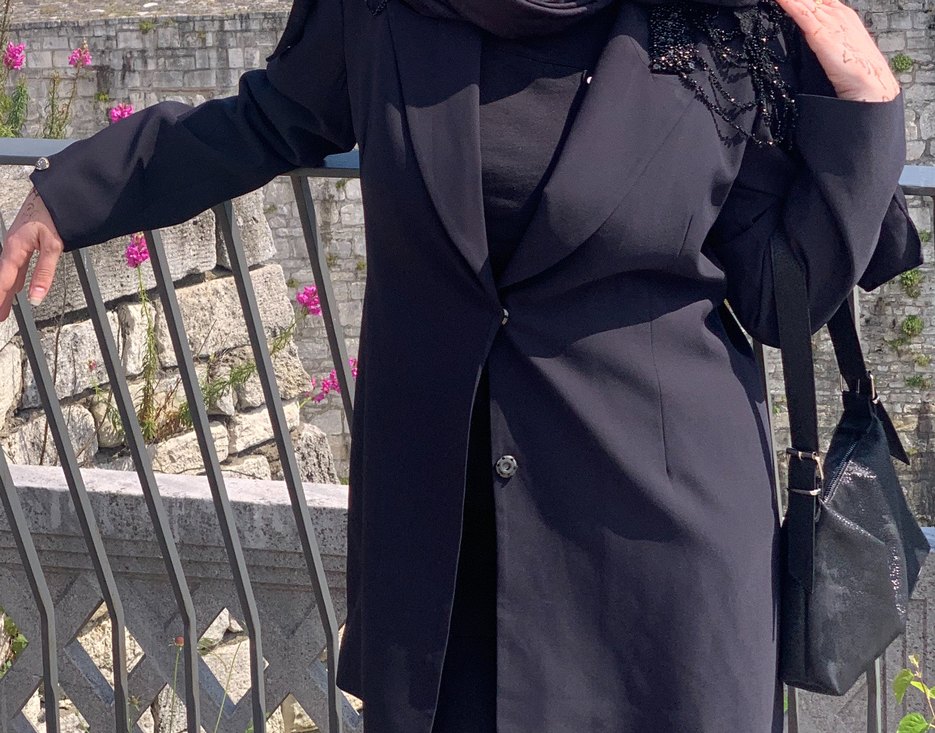 Siyah Düğmeli Uzun Kadın Takım Ceketi