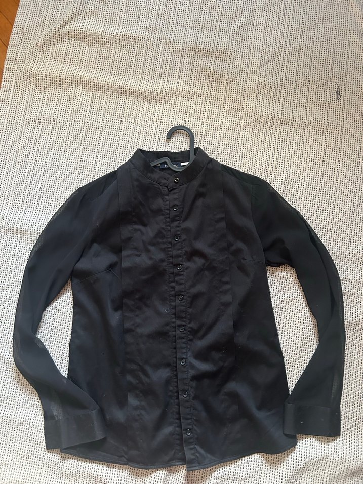 Siyah gömlek, hakim yakalı, uzun kollu ve düğmeli ön detaylıdır. Kolları tüldürz Ofis kullanımı için uygun, regular fit tarzda bir üründür.