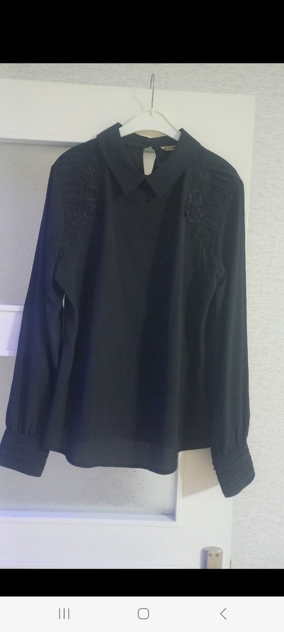 Siyah, düğmeli, uzun kollu, yakalı gömlek. Gevşek kesim ve hafif gotik tarzıyla ofis için uygun.