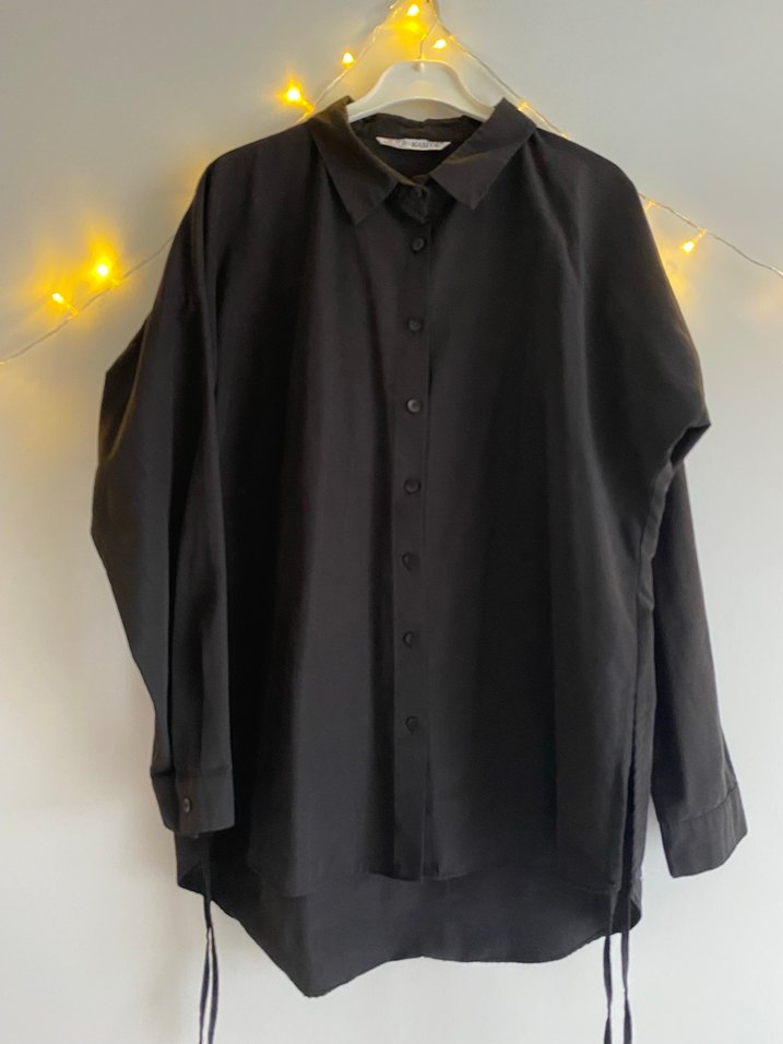 Siyah Düğmeli Uzun Kollu Kadın Gömlek