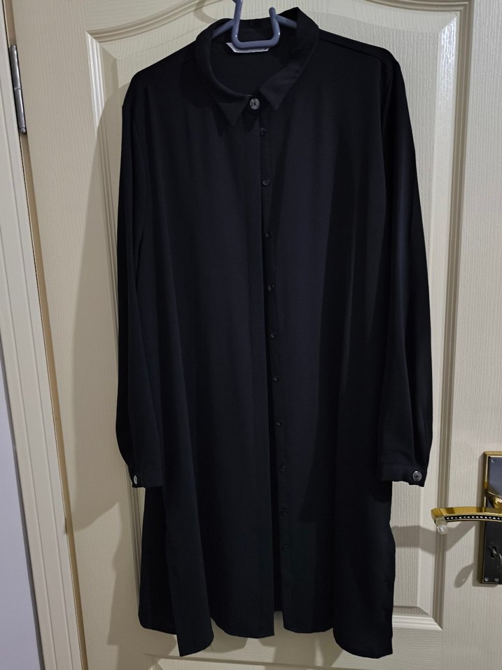 Siyah Düğmeli Uzun Kollu Kadın gömlek Tunik