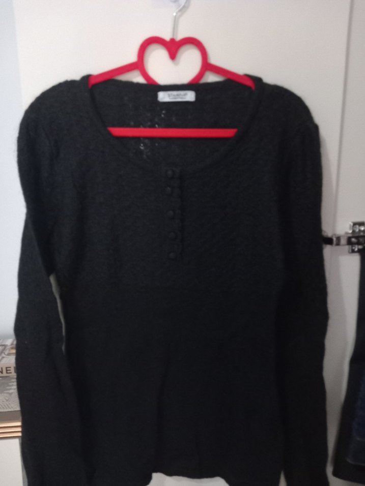 Siyah Düğmeli Uzun Kollu Kadın Kazak