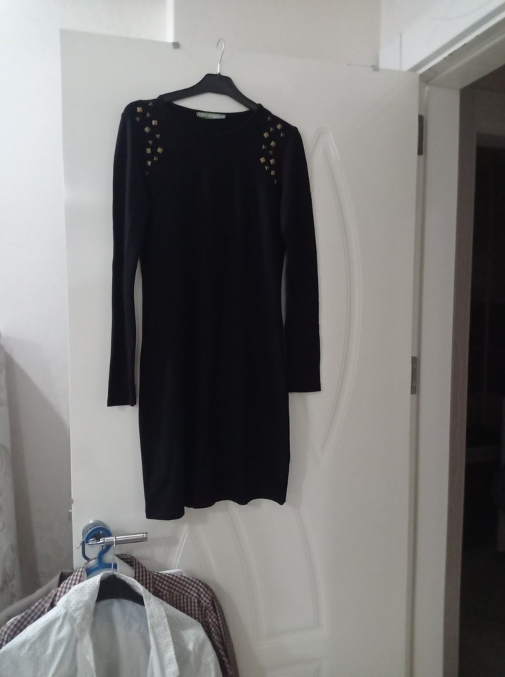 Uzun kollu, bisiklet yaka siyah elbise şık bir elbise Limon (company marka)