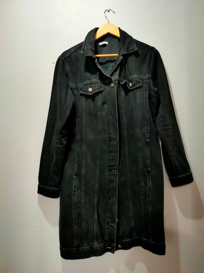 Siyah Düğmeli Uzun Kot Ceket