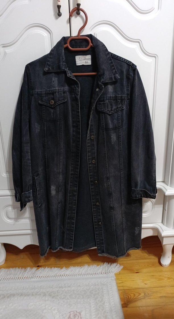 Kadınlar için siyah kot ceket, bol kesim ve uzun kollu, düğmeli ön kısmı ve kesik yaka ile midi boyda tasarlanmıştır. Rahat sokak tarzına uygundur. cok kaliteli