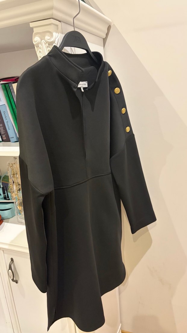 Siyah renkte, düğmeli omuz detaylı, yüksek yakalı ve uzun kollu hamile kabanı. Regular kesim ve uzun boylu, yumuşak ve sıcak kumaştan üretilmiştir. Ofis için uygun, sokak modası tarzında. Ürün 34 beden ama çok geniştir m giyiyorsanız da tercih edebilirsiniz