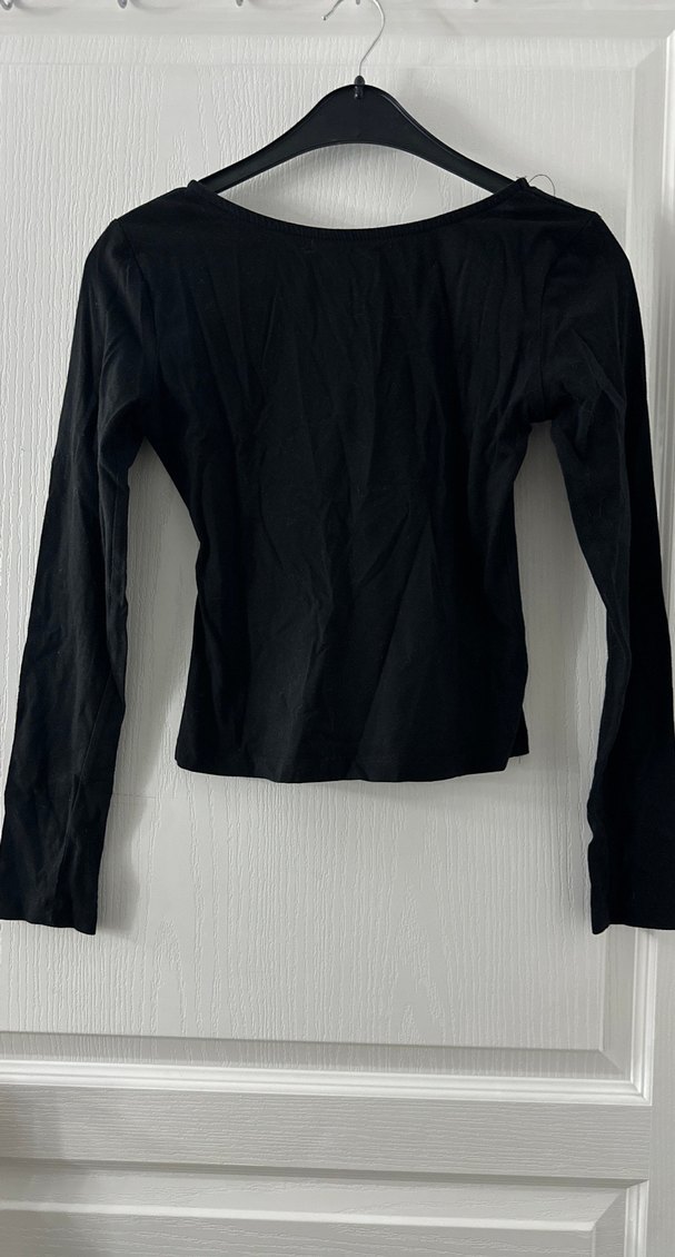 Siyah, düğmeli ve V yakalı bu kadın bluz, uzun kollu ve ince kesimdir. Keten kumaştan yapılmış, minimalist gotik tarzda ve normal uzunluktadır.
